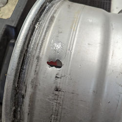 Cracks Happen! Unfortunately aluminum alloy wheels are highly susceptible to cracking. Currently, the majority of wheels are cast aluminum alloy. Cast alloy wheels are more susceptible to cracking than their steel counterparts. Cracking occurs upon bending the wheel further than the aluminum alloy can 'flex'. Bending your wheel comes from road impacts such as potholes, uneven pavement, bridge joints etc. Cracks can also be caused by imperfections in the casting process or if someone has hammered on your wheel. Your best defense against cracking a wheel is to drive very defensively, avoiding as many potholes and harsh pavement conditions as possible. In addition to good driving, regularly check and air up your tires as needed. Once your tire pressure drops below the recommended level (usually 30-44 psi for passenger cars) it can no longer protect your wheel from road hazards such as potholes. Not to worry though, if you do happen to crack a wheel, we are here to repair it. And we guarantee it!